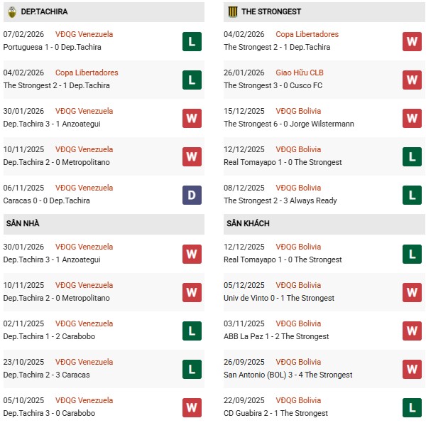 The Strongest đã thua 3/4 chuyến làm khách gần nhất (đều thuộc mùa 2025), trong số này có một hôm họ bị đánh giá thấp hơn. Tính ra, The Strongest thua tới 4/5 trận xa nhà vừa qua mà phải sắm vai "đội yếu". Như vậy kịch bản Tachira thắng trận này không bất khả thi chút nào.