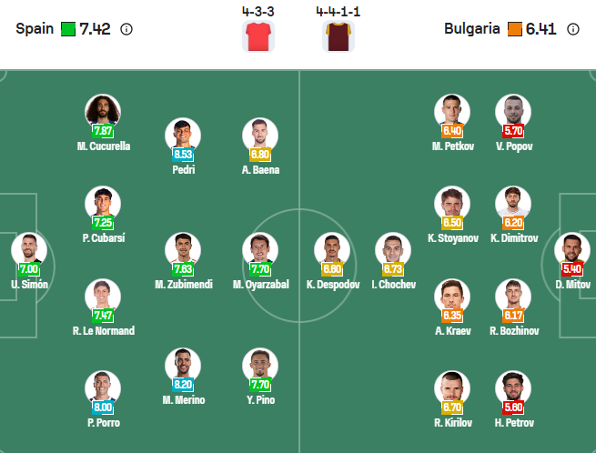 Với 9 điểm trọn vẹn, Tây Ban Nha vững vàng trên ngôi đầu bảng, tạo cách biệt 3 điểm với Thổ Nhĩ Kỳ và 6 điểm so với Georgia, mở rộng cánh cửa đến kỳ World Cup thứ 13 liên tiếp. Sự tự tin của nhà ĐKVĐ châu Âu càng được củng cố khi họ từng thắng 5/6 lần đối đầu Bulgaria, trong đó có chiến thắng 1-0 ở trận giao hữu năm 2002.