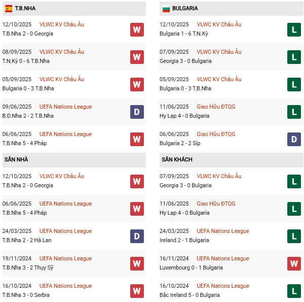 - Tây Ban Nha toàn thắng cả 2 trận đối đầu Bulgaria gần đây.