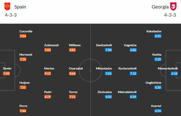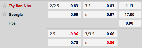 Không có gì ngạc nhiên khi Tây Ban Nha ở cửa trên với tỷ lệ chấp 2 1/4 bàn cho cả trận. La Roja đang duy trì phong độ ổn định khi thắng 4/5 trận gần nhất trên mọi đấu trường. Trong khi đó, Georgia chỉ có 1 chiến thắng trong 3 trận gần đây và thường gặp khó khi đối đầu với những đội bóng lớn. Thực tế, Tây Ban Nha đã toàn thắng cả 5 lần chạm trán gần nhất giữa hai đội. Với chất lượng đội hình vượt trội, nếu thi đấu đúng năng lực, Tây Ban Nha được dự đoán sẽ dễ dàng giành chiến thắng cách biệt và vượt kèo châu Á.