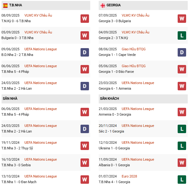 - Trên sân nhà, Tây Ban Nha thắng 4, thua 1 trước Georgia.
