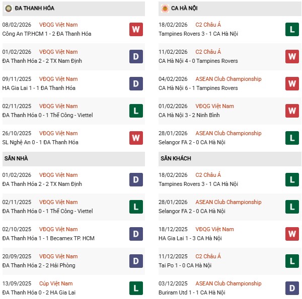 - Thanh Hóa thắng 2, hòa 1, thua 4 trong 7 trận gặp CAHN gần đây.