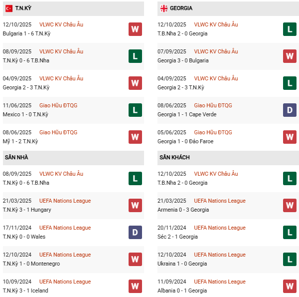 Nhận định Thổ Nhĩ Kỳ vs Georgia, 01h45 ngày 15/10, bảng E VL World Cup 2026 KV châu Âu, sân Kocaeli. Thổ Nhĩ Kỳ thắng 4 trong 5 trận gần nhất, trong khi Georgia lại cho thấy dấu hiệu sa sút khi để thua 2 trong 3 trận gần đây.