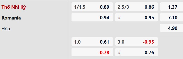Trong 5 trận đấu gần nhất của Thổ Nhĩ Kỳ, đã có tổng cộng 24 bàn thắng được ghi (trung bình 4,8 bàn/trận), trong khi con số của Romania là 20 bàn (trung bình 4 bàn/trận). Nhìn vào trận đối đầu gần nhất giữa hai đội, chỉ có tổng cộng 2 bàn thắng được ghi (trung bình 2 bàn/trận). Dựa trên số liệu này, khả năng trận đấu có dưới 3 bàn thắng là rất cao.