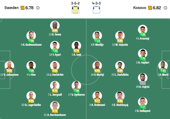 Đối lập hoàn toàn với Thụy Điển, Kosovo là đội bị đánh giá yếu nhất ở bảng B thế nhưng lại đang là cái tên tạo ra được nhiều bất ngờ nhất. Trải qua 3 lượt trận, đội khách có 4 điểm, tạm đứng nhì bảng, thành tích vừa đủ để giành lấy một tấm vé tham dự loạt trận play-off tranh vé dự World Cup.