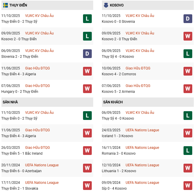 - Trên sân nhà, Thụy Điển thắng cả 2 trận trước Kosovo.