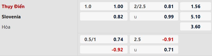 Lựa chọn tốt nhất: Slovenia +1 cả trận
