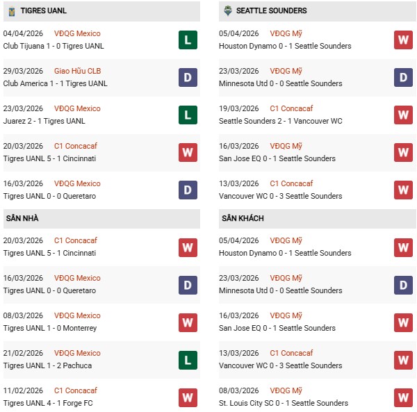 Chắc chắn kể cả được chơi trên sân nhà thì Tigres cũng không dễ gì ăn được một Sounders đang thi đấu tốt, mới 1 trận sân khách từ đầu năm 2026 không ghi được bàn. Ngay cả Tigres thời gian gần đây cũng thường xuyên phải "lấy công bù thủ", dẫn đến tỷ lệ lớn trận đấu khép lại với không dưới 3 pha lập công. Trận tới xem ra khó ngoại lệ.
