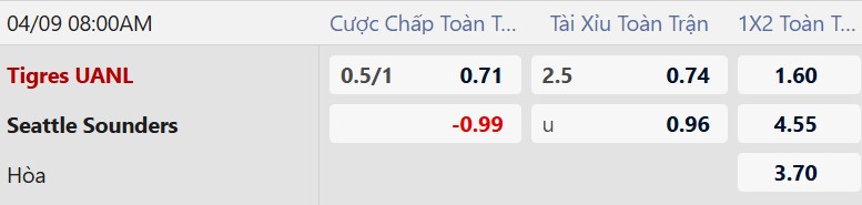 Tigres hiểu rằng nếu muốn cạnh tranh tấm vé dự bán kết thì họ cần phải có kết quả tốt trên sân nhà ở lượt đi. Nhìn lại quá khứ, Tigres hóa ra cực kỳ có duyên với các đại diện MLS tại sào huyệt UANL khi chẳng những chưa một lần trắng tay mà còn thắng phần lớn. Cộng thêm việc được xếp mức -3/4 (hoặc -1) tương đối tích cực dù đối thủ đang chơi tốt thì khả năng Tigres chiến thắng trận này càng thêm sáng sủa.
