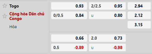 Togo chỉ thắng 1 và thua tới 5 trong 6 lần từng đối đầu với CH Congo trong quá khứ. CH Congo đang có động lực rất lớn cùng đội hình mạnh dự kiến sẽ giành thêm 3 điểm nữa. Bên cạnh đó, CH Congo thắng kèo lần gần nhất chấp Togo1/4 trái. CH Congo cũng thắng kèo lẫn tỷ số cả 2 trận sân khách vừa qua thuộc vòng loại World Cup 2026 khu vực châu Phi.