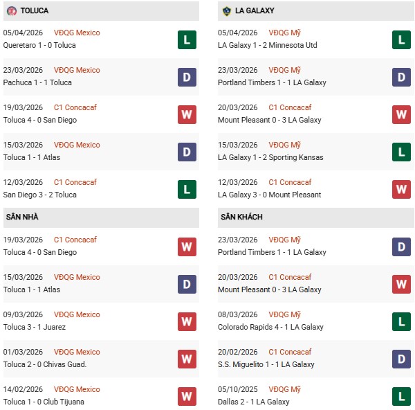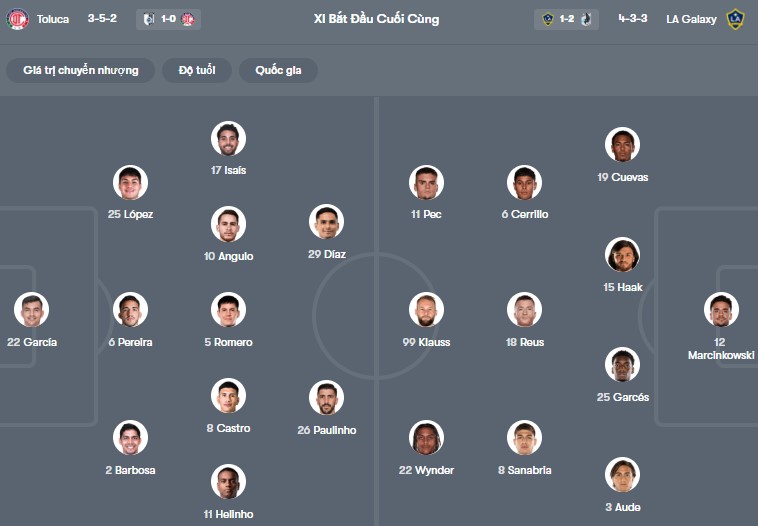 DỰ ĐOÁN: Toluca 3-1 LA Galaxy