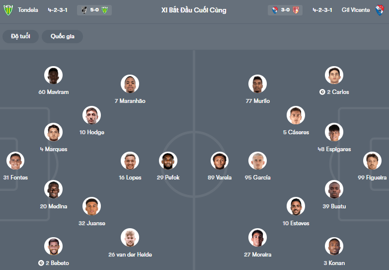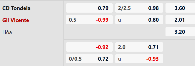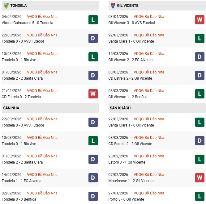 - Trên sân nhà, Tondela thắng 1, thua 2 trước Gil Vicente.