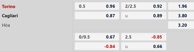 Lẻ bàn thắng: 5/8 trận đối đầu vừa qua giữa Torino vs Cagliari có tổng bàn thắng không chia hết cho 2. Ngoài ra, 7/10 trận vừa qua của Torino và 3/5 trận gần đây của Cagliari đều chứng kiến điều tương tự.
