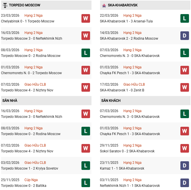 - Torpedo thắng 4, hòa 4, thua 2 trong 10 trận gặp SKA Khabarovsk gần đây.