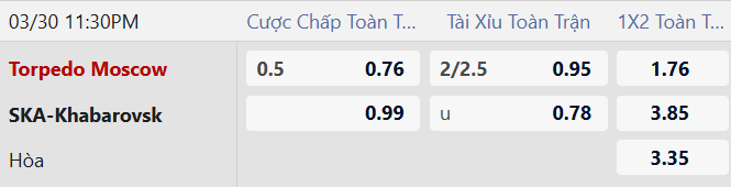 Mức kèo Torpedo Moscow chấp 1/2 bàn cho thấy đánh giá cao lợi thế sân nhà của họ. Với phong độ đang cải thiện cùng sự hiệu quả trên hàng công, đội chủ nhà có cơ sở để hướng đến 3 điểm. Trong khi đó, SKA Khabarovsk lại thi đấu thiếu ổn định trên sân khách và hàng thủ dễ mắc sai lầm.