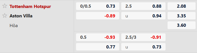 Tottenham được xếp ở cửa trên với tỷ lệ chấp 1/2 bàn cho cả trận. Đội bóng của Thomas Frank đang có phong độ ổn định. Ở chiều ngược lại, Aston Villa cũng thể hiện phong độ xuất sắc với chuỗi bốn chiến thắng liên tiếp. Tuy nhiên, khi thi đấu xa nhà, Aston Villa vẫn chưa có thắng lợi nào tại Ngoại Hạng Anh. Xét tổng thể, Tottenham đang duy trì sự ổn định và hiệu quả cao hơn, đặc biệt là trên sân nhà. Do đó, kịch bản Spurs giành trọn 3 điểm là lựa chọn đáng tin cậy hơn.