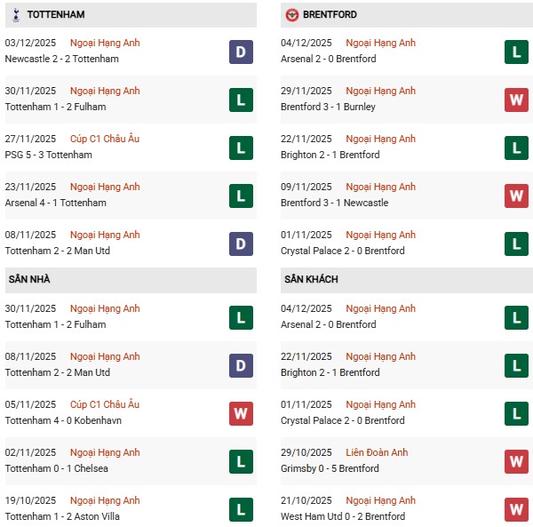 Thống kê cho thấy một bức tranh đáng lo ngại về phong độ quốc nội của Tottenham, với 5 chiến thắng, 4 trận hòa và 5 trận thua sau 14 lần ra quân tại Ngoại hạng Anh. Hiệu số bàn thắng bại +5 cho thấy họ là một đội bóng có khả năng tạo ra cơ hội nhưng cũng dễ bị thủng lưới ở những thời điểm quan trọng. Đặc biệt đáng lo ngại là thành tích sân nhà, nơi họ chỉ giành được 1 chiến thắng cùng 2 trận hòa và 4 trận thua - một thành tích dưới mức chấp nhận được đối với một đội bóng có tham vọng và thực lực.
