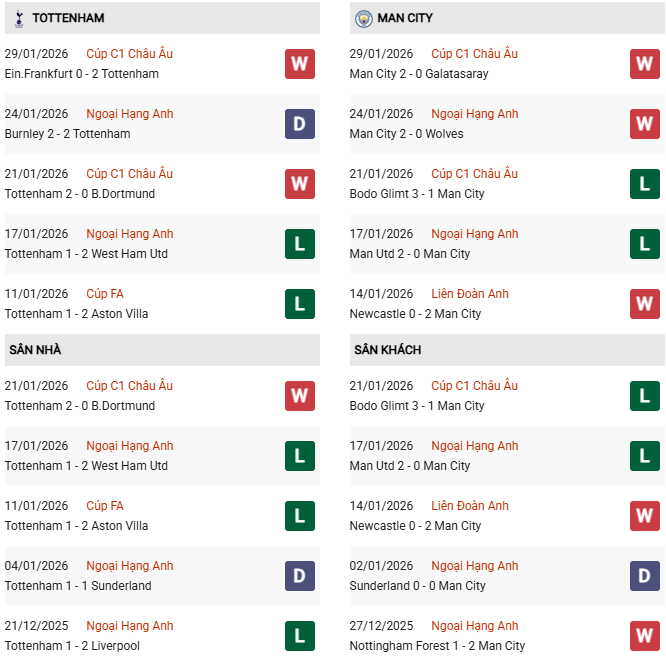 - Trên sân nhà, Tottenham thắng 6, thua 4 trước Man City.