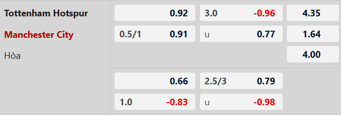 Tối đa 2 bàn: 4/5 trận gần đây của Man City chỉ có tối đa 2 bàn. 4/6 trận đối đầu gần nhất giữa đội bóng này và Tottenham số lần lưới rung cũng không lên được tới 3.