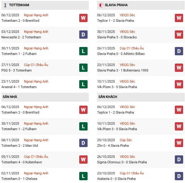 Mới đây, Tottenham đã giành chiến thắng 2-0 trước Brentford. Nhờ vậy, Tottenham hiện đứng thứ 9 trên BXH Ngoại hạng Anh 2025/26. Vì thế, Tottenham cũng tạm chấm dứt mạch 5 trận không thắng. Bây giờ, CĐV hi vọng HLV Thomas Frank và các học trò sẽ mang sự tự tin và tâm lý đó hướng ra đấu trường Champions League. Ở vòng đấu này, Tottenham sẽ tiếp các vị khách Slavia Praha.