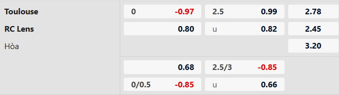 Từ 3 bàn trở lên: 3/4 trận gần nhất của Toulouse và 5/7 trận vừa qua của Lens đều có tối thiểu 3 bàn cả trận. Hơn nữa, 7/10 chuyến xa nhà vừa qua của Lens cũng có ít nhất 3 bàn cả trận.