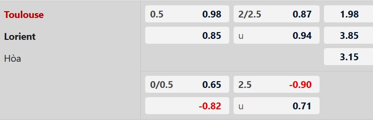 Toulouse hoặc tịt ngòi hoặc nổ súng đúng 1 lần ở 7/8 trận sân nhà gần nhất thuộc giải VĐQG Pháp và chính sự "tậm tịt" này đã làm cho 6 cuộc đấu sau cùng có dưới 3 pha lập công chung cuộc. Phía đối diện, Lorient lại có đến 6/7 chuyến làm khách mới đây tại Ligue 1 không nhận quá 2 bàn thua và 5 trận sở hữu kết cục tẻ nhạt với người xem, giống như 5/7 màn chạm trán vừa qua giữa hai đội.