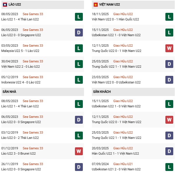 - U22 Lào thua cả 2 trận đối đầu U22 Việt Nam gần đây.