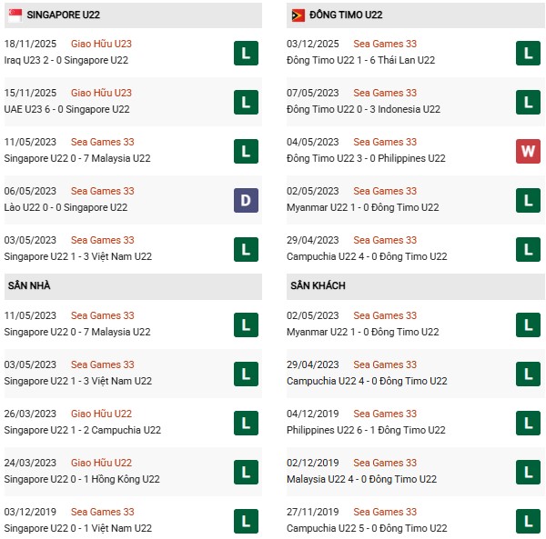 Thống kê phong độ U22 Singapore vs U22 Đông Timor:
