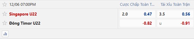 Thông tin tỷ lệ cược U22 Singapore vs U22 Đông Timor: