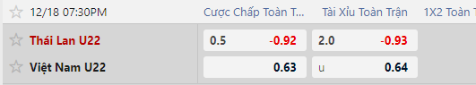 | 19h30 | Thái Lan U22 | VS | Việt Nam U22 |
