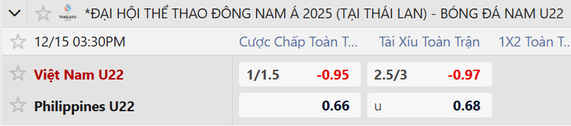 Lựa chọn tốt nhất: U22 Philippines & Xỉu cả trận