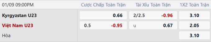 | 21h00 | Kyrgyzstan U23 | VS | Việt Nam U23 |