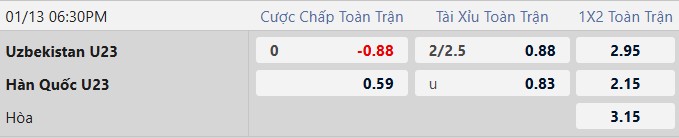 | 18h30 | Uzbekistan U23 | VS | Hàn Quốc U23 |