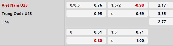 Lựa chọn tốt nhất: U23 Việt Nam & Xỉu cả trận