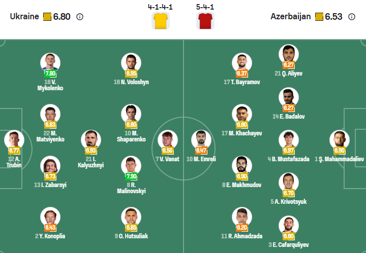 - Ukraine thắng 1, hòa 2 trong 3 trận gặp Azerbaijan gần đây.