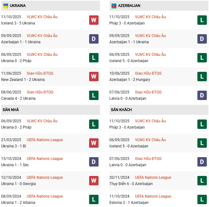 Trong khi đó, Azerbaijan vừa trải qua thất bại nặng nề 0-3 trước Pháp, nơi Kylian Mbappe tiếp tục chứng minh đẳng cấp khi ghi 1 bàn và kiến tạo 1 bàn. Sau 3 lượt trận, Azerbaijan mới có duy nhất 1 điểm, xếp cuối bảng D và kém Ukraine 3 điểm.