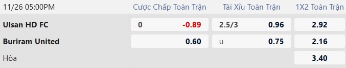 Kèo chấp hòa được thua xuất hiện ở trận này cho thấy hai đội được đánh giá ngang nhau. Ulsan HD có ưu thế sân nhà và kinh nghiệm thi đấu tại các giải châu lục, nhưng Buriram lại đang sở hữu phong độ cao hơn.