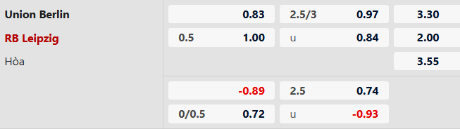Với phong độ kém cỏi ấy, Union Berlin đương nhiên vẫn bị đánh giá thấp hơn so với Leipzig qua mức kèo được chấp 1/2 bàn. Đoàn quân của HLV Steffen Baumgart có lẽ sẽ phải nỗ lực rất nhiều thì mới có hy vọng có điểm trong màn tiếp đón đội đang xếp thứ nhì tại Bundesliga.