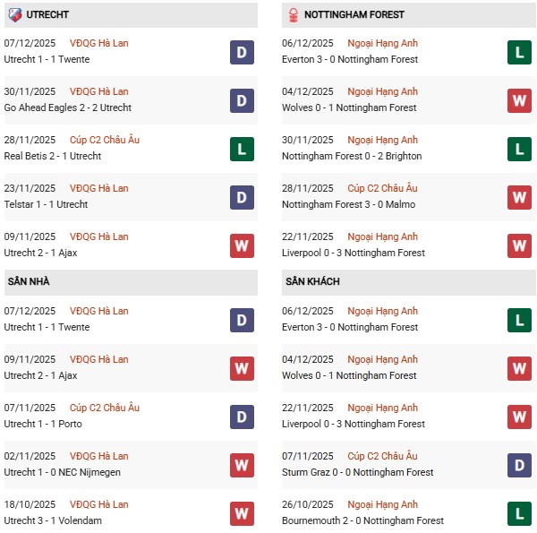 Utrecht bước vào trận đấu với Nottingham Forest trong trạng thái tự tin khi phong độ trên sân nhà mùa này khá ổn định. 6 trận gần nhất Utrecht đã bất bại trên sân nhà, họ không phải nhận bất cứ thất bại nào. Đại diện Hà Lan thường triển khai lối đá chủ động, pressing tầm trung kết hợp những pha leo biên tốc độ từ hai hành lang cánh. Ở trung tuyến, Utrecht sở hữu bộ đôi chơi máu lửa, có khả năng thu hồi bóng và phát triển tấn công nhanh, giúp họ tạo ra nhiều cơ hội trước các đối thủ chơi thiên về thể lực.