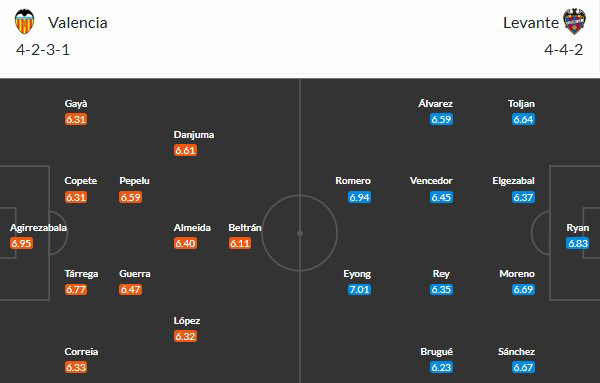 Cả hai đối thủ ở trận đấu sớm của vòng 13 La Liga đều đang không có phong độ tốt. Họ đang trong nhóm vật lộn trụ hạng. Valencia hiện hơn Levante 1 điểm, xếp ở vị trí thứ 17. Còn đội khách ở trận đấu này đang đứng thứ 2 từ dưới lên tại bảng xếp hạng. Đây có thể xem là cuộc chiến của 2 kẻ cùng đường bí lối. Họ đều muốn có một chiến thắng để tạo đà bứt lên. Tuy nhiên, xét cả về phong độ lẫn trình độ, không dễ để họ hoàn thành mục tiêu. Không loại trừ khả năng trận chiến này sẽ kết thúc bất phân thắng bại.