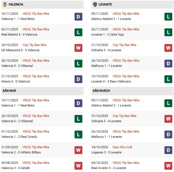 - Valencia thắng 5, hòa 4, thua 1 trong 10 trận gặp Levante gần đây.