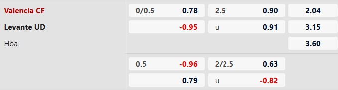 Valencia với lợi thế sân nhà được đánh giá nhỉnh hơn cùng mức kèo 1/4 bàn. Dù vậy, đây là trận đấu mà tuy có lợi thế sân nhà, nhưng Valencia chưa chắc đã giành nổi 3 điểm trước Levante. Không loại trừ khả năng trận đấu này kết thúc bất phân thắng bại.