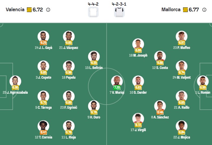 Đặc biệt, Mallorca rất yếu bóng vía trên sân khách. Theo thống kê, trong 12 chuyến hành quân gần đây ở La Liga, họ chỉ giành được duy nhất 1 chiến thắng, còn lại hòa 2 và phải nhận tới 9 thất bại. Với thành tích bết bát khi rời xứ đảo như vậy, rất khó để các học trò của HLV Jagoba Arrasate tự tin hành quân đến sân Mestalla cuối tuần này.