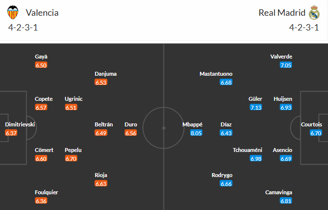 Sẽ không bất ngờ nếu như Real Madrid đánh bại Valencia ngay ở Mestalla để giành 3 điểm, qua đó tiếp tục nuôi hy vọng vượt mặt kình địch Barca. Với hàng công được dẫn dắt bởi cầu thủ đang dẫn đầu danh sách “Vua phá lưới” là Kylian Mbappe, đội bóng của ông Alvaro Arbeloa có hy vọng ra về với chiến thắng có cách biệt từ 2 bàn trở lên.