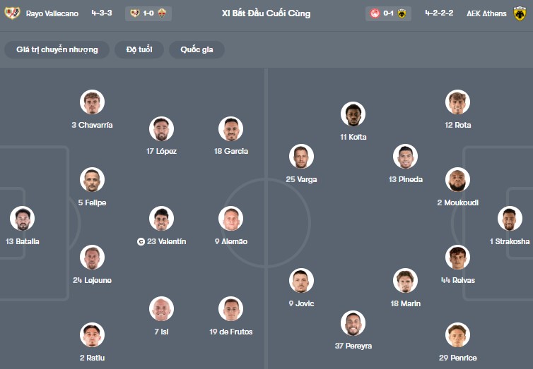 Ở phía đối diện, AEK Athens cũng cho thấy sự lì lợm đáng nể. Thầy trò HLV Marko Nikolić thắng 3, hòa 1 và chỉ thua 1 ở 5 trận gần nhất. Đáng chú ý, phong độ sân khách của AEK khá ổn khi bất bại 5 chuyến xa nhà gần đây, trong đó có chiến thắng quan trọng 1-0 trước Olympiakos. Điều này cho thấy họ hoàn toàn đủ sức tạo ra thế trận khó chịu trước Vallecano.