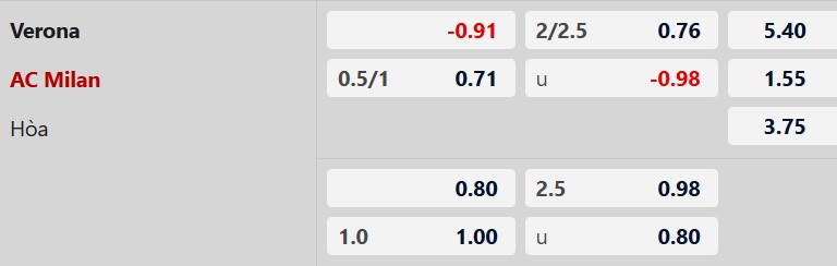 Mức chấp 3/4 bàn cho thấy niềm tin vào đẳng cấp của AC Milan trước một đội bóng đứng áp chót. Tuy nhiên, đây là mức kèo đầy rủi ro khi cả hai đội đều đang có phong độ chạm đáy. Verona thua 4 trận liên tiếp, trong khi Milan cũng thua 3/5 trận gần nhất. Trong bối cảnh Milan đang khủng hoảng và thường xuyên để thua kèo trước các đối thủ yếu hơn, việc đặt niềm tin vào đội khách lúc này là quyết định mạo hiểm.