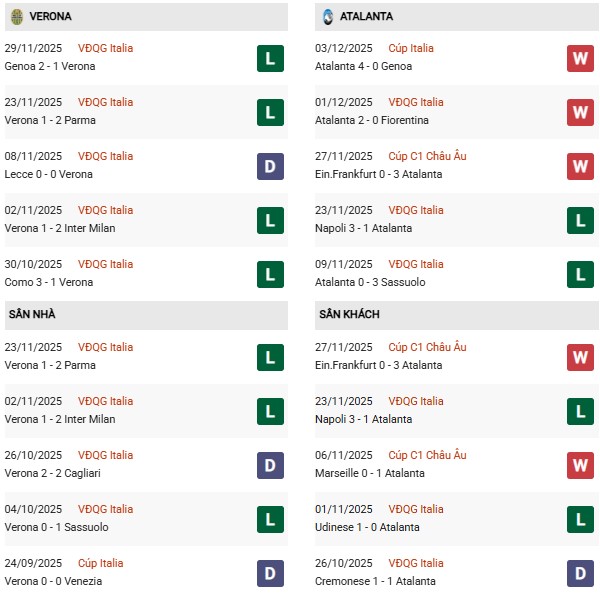 Hồi giữa tuần, Verona không phải tham dự Cúp quốc gia Italia 2025/26 nhưng Atalanta thì có. CLB này đã nhẹ nhàng đánh bại Genoa 4-0 để góp mặt ở vòng tứ kết. Bây giờ, họ sẽ phải chuẩn bị cho chuyến làm khách trước Verona ở vòng 14 Serie A.