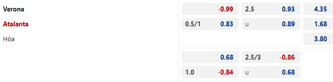 Lẻ bàn thắng: 10/15 trận đối đầu gần nhất giữa 2 CLB có tổng bàn thắng chia hết cho 2. Ngoài ra, 3/4 trận vừa qua của Verona lẫn Atalanta đều chứng kiến điều tương tự.