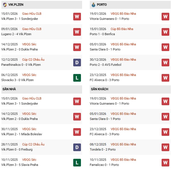 Tuy vậy, 2/3 trong số này lại chỉ là những trận giao hữu vô thưởng vô phạt, nên Viktoria Plzen khó có thể tự tin khi tiếp đón Porto vừa thắng liền 9 đối thủ trên mọi đấu trường. Đáng chú ý, riêng 5 trận gần đây Porto không chỉ toàn thắng mà họ còn luôn thành công trong việc giữ sạch lưới.