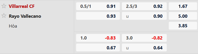 Cả Villarreal và Rayo Vallecano đều là những đội bóng chơi cực kỳ thực dụng. Họ đều mới phải nhận về vỏn vẹn 10 bàn thua ở mùa giải năm nay. 3/4 lần gặp nhau của hai đội ở 2 mùa La Liga gần nhất đều kết thúc mà không thể có quá 2 lần lưới rung. Thế nên với kèo đấu này, cùng tỷ lệ tài xỉu 2 3/4, cơ hội để kèo Xỉu xuất hiện sau 90 phút sẽ là rõ hơn rất nhiều.